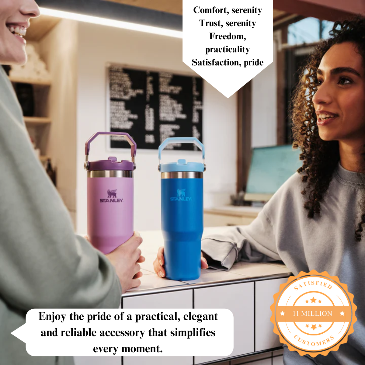 More than a water bottle, the Stanley is a lifestyle accessory. Its colors and minimalist design make it a fashionable piece. You assert your style even in the details. Hydration and elegance finally brought together.